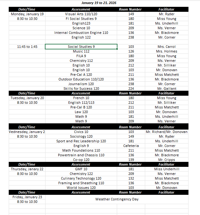 Exam Schedule Jan 2026